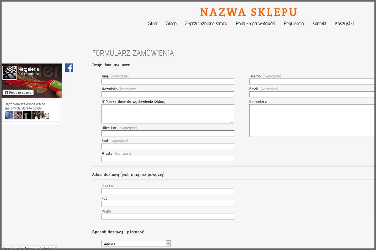 standardowy formularz zamówienia i adresu dostawy - strony z funkcją sprzedaży