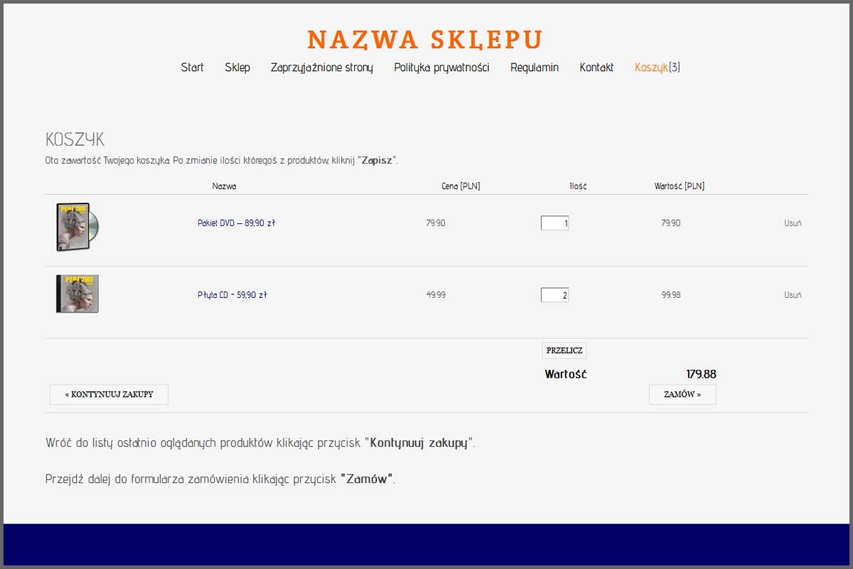 standardowa obsługa koszyka - strony z funkcją sprzedaży