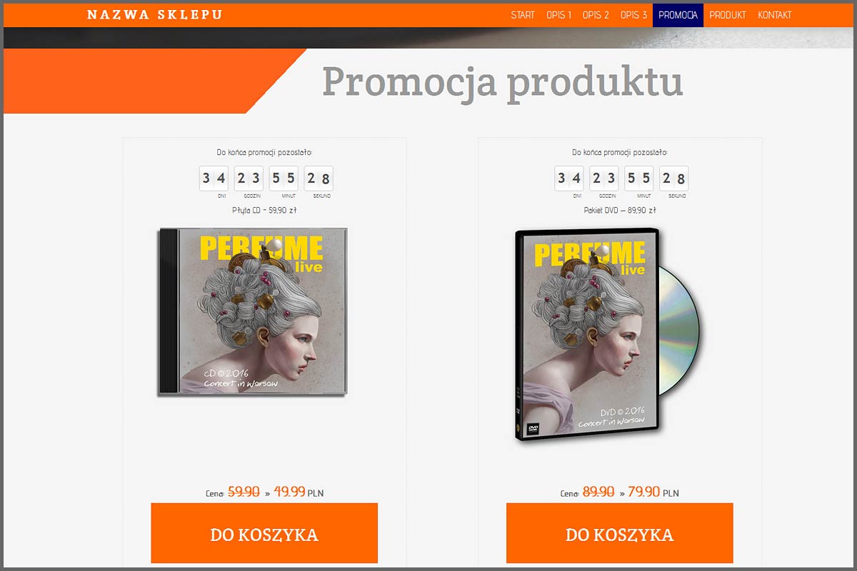 efektowne odliczanie czasu przeceny towaru - strony ze sklepem
